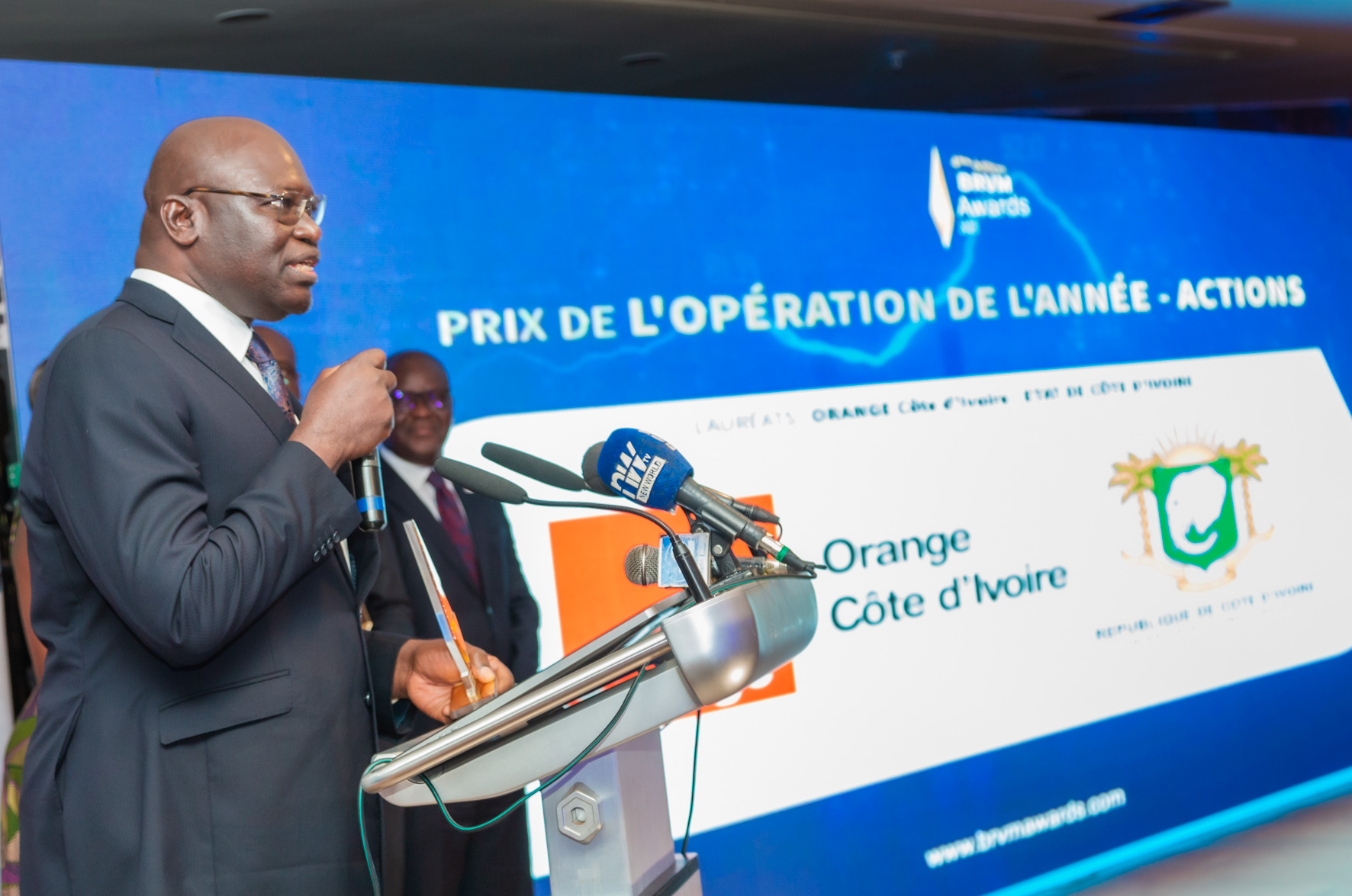 Le Comité de Privatisation, pour le compte de l’État de Côte d’Ivoire, et Orange CI ont remporté le Prix de l’opération de l’année sur le marché des actions, le 11 mai 2023 à Lomé, à l’occasion de la 4ème édition des BRVM AWARDS, organisée par la Bourse Régionale des Valeurs Mobilières (BRVM).